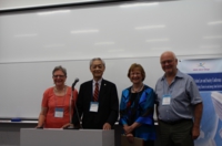 Three Presidents of the LSA (Valerie Hans of Cornell, the current President; Carroll Seron of UC Irvine, the Immediate Past President; Malcolm Feeley of UC Berkeley, the president for 2005-2007) were invited. Their presence made this a truly special event for scholars outside the United States. The fifth photo shows me with them at the opening session. (from left: Seron, me, Hans and Feeley)